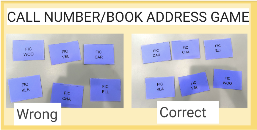 in the Call Number/Book Address Game, a fun activity where they practiced arranging call numbers in the correct order. This game not only reinforces the idea that every book has a specific place, but it also emphasizes the importance