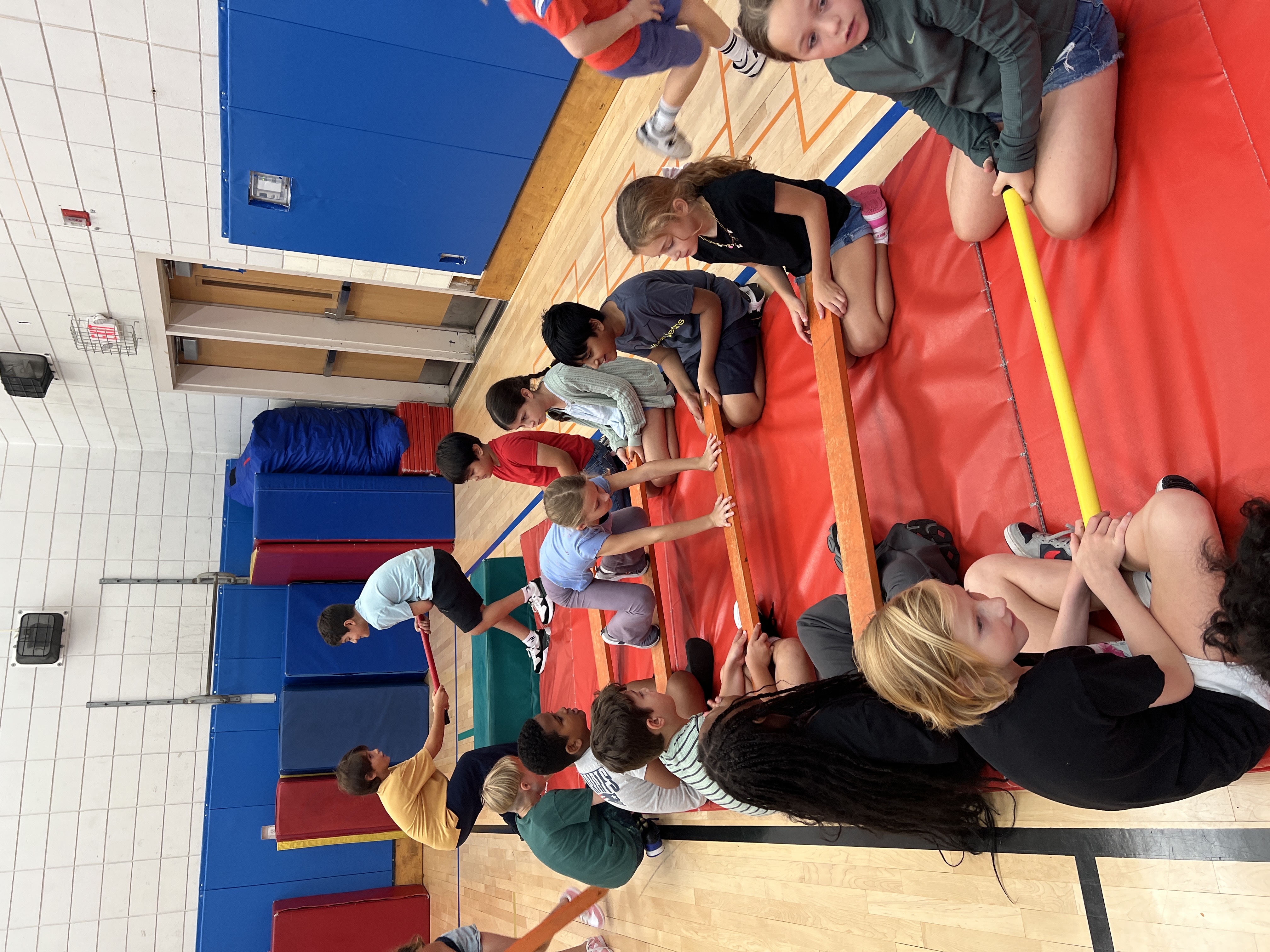 a Cooperative Learning unit in Physical Education (PE). Here are some of our students participating in the Human Bridge challenge where teammates move parts of the bridge to support each other over the “hot lava.”